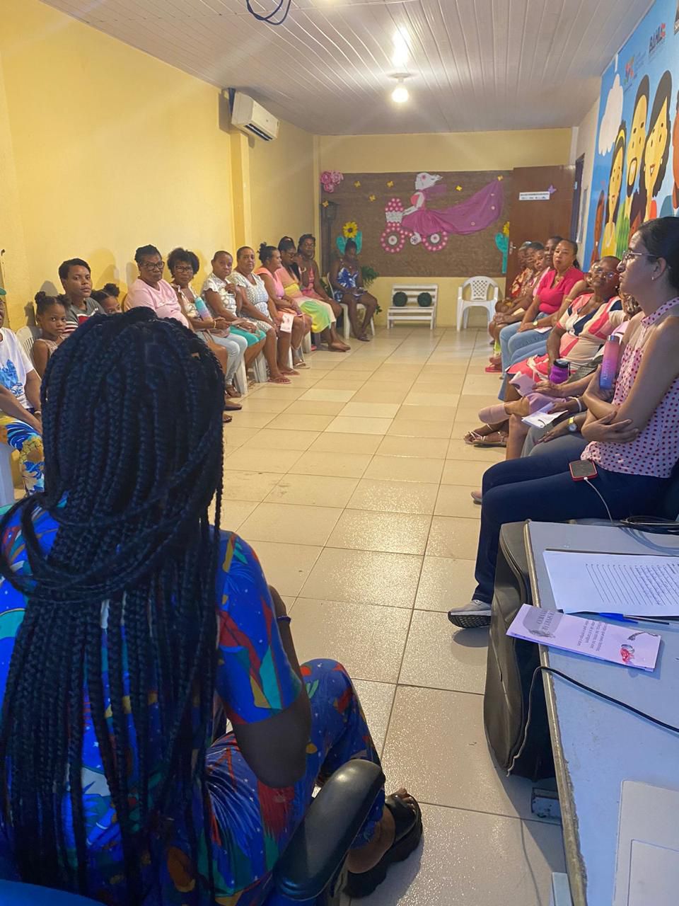 Durante o encontro, a pauta principal do diálogo foi: “Você conhece seu assoalho pélvico? Quando ele não funciona bem, o que pode causar?” — um convite à reflexão sobre o autoconhecimento e o cuidado com o próprio corpo.