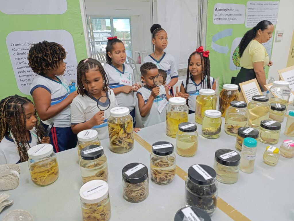 O grupo foi acolhido pelo Departamento Pedagógico da SEDUC, por meio da Sala Verde, e participou de uma atividade de intervenção com a temática “Animais em extinção e a importância dos mariscos e do manguezal para o equilíbrio ambiental”.